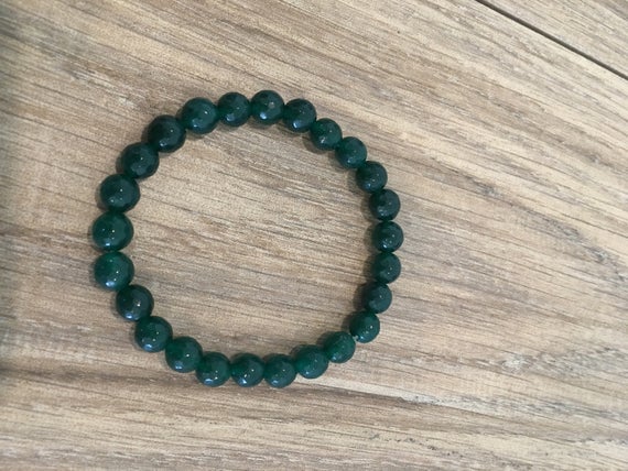 At a Great PriceDainty Slave Loose 8mm Stretchable Green Emerald Bracelet Round, Smooth 7" for mens, womens, gf, bf & Adult.