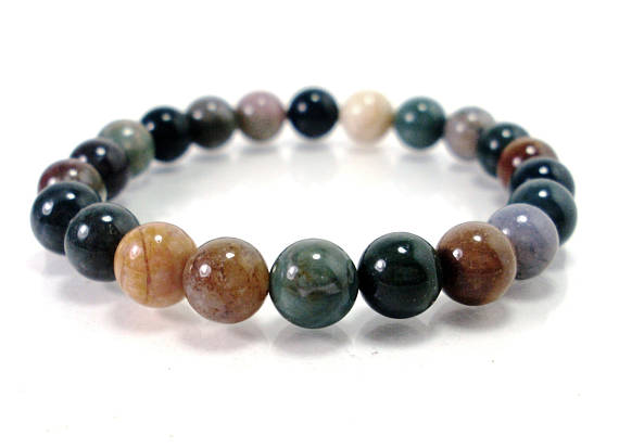 At a Great PriceDainty Slave Loose 8mm Stretchable Multi Indian Agate Bracelet Round, Smooth 7" for mens, womens.