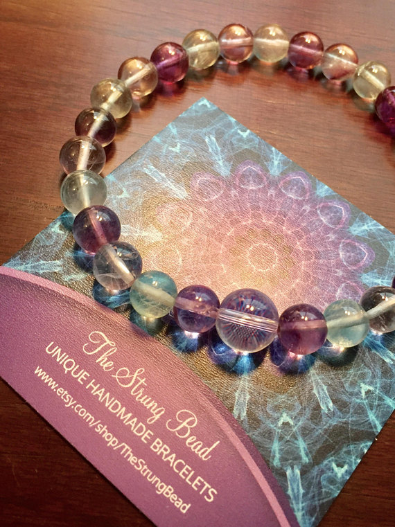 At a Great PriceDainty Slave Loose 8mm Stretchable Multi Rainbow Fluorite with Clear Quartz Bracelet Round, Smooth 7" for mens, womens.