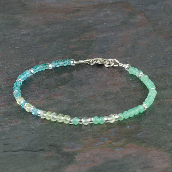 Delicate Faceted Multi Gemstone Bracelet, Spring Colors AAA Gems Apple Green Chrysoprase, Prehnite, Aqua Apatite, Handmade Stacking Bracelet 3mm to 3.5mm Code- WAR6834