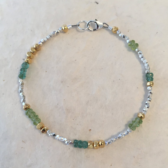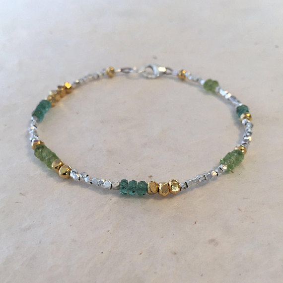 At a Great PriceEmerald Peridot Karen Hill Tribe Silver and Gold Vermeil Beaded Bracelet, Sundance Style, May Birthstone, August Birthstone, Boho Chic 3-4mm Code- WAR6455
