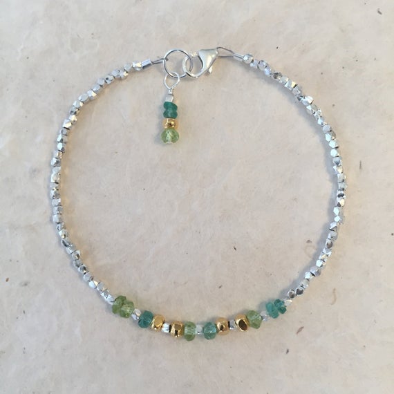 At a Great PriceEmerald Peridot Karen Hill Tribe Thai Silver and Gold Vermeil Beaded Bracelet, Sundance Style 3-5mm Code- WAR6478