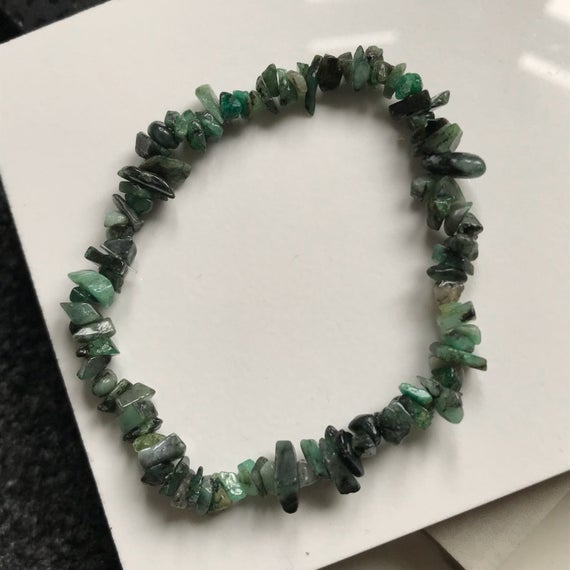 At a Great PriceEmerald rough gemstone (certified) crystal healing plain stretch bracelet Code- WAR6640