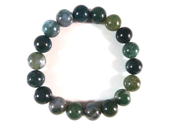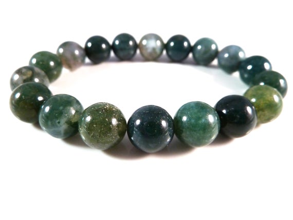 At a Great PriceEmpath Protection 10mm Stretchable Green Moss Agate Bracelet Round, Smooth 7.5" for mens, womens, gf, bf & Adult.