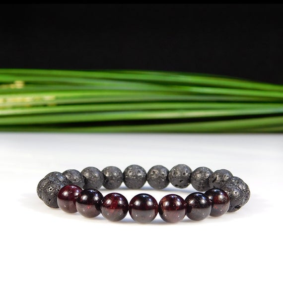 At a Great PriceEmpath Protection 8mm Stretchable Black & Red Garnet and Lava Rock Bracelet Round, Smooth 7" for mens, womens, gf, bf & Adult.