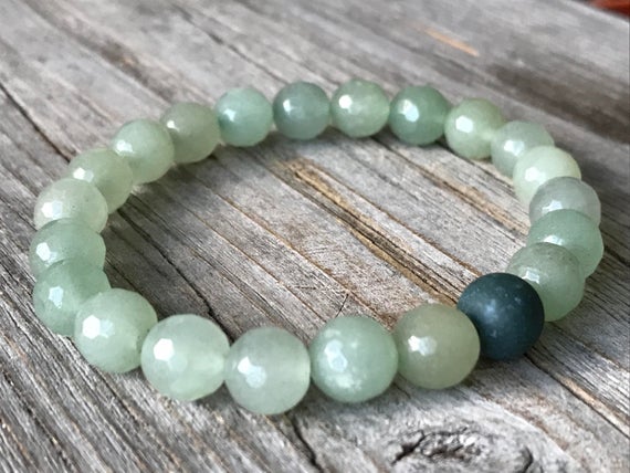 At a Great PriceEmpath Protection 8mm Stretchable green Green Aventurine Bracelet Round, Faceted 7" for mens, womens, GF, BF, Adults.
