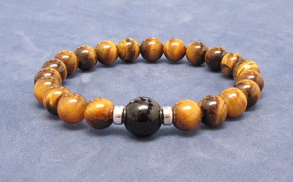 At a Great PriceEmpath Protection silver Helling 10mm stretchable Black & Yellow Yellow Tiger Eye & Black Tourmaline Bracelet Round, Smooth 7.5" for mens, womens, GF, BF, Adults.
