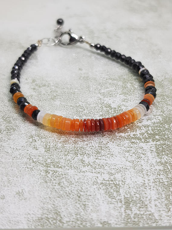At a Great PriceFire Opal and Black Spinel Petite Stacking Bracelet. All Quality Gemstone on Steel Clasps 3x1 to 4x2mm Code- WAR6807