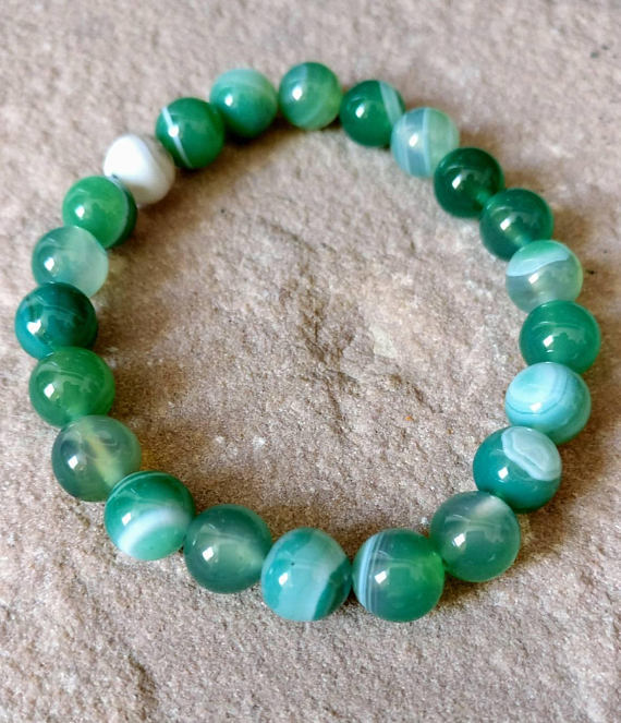 Galaxy Jewelry 8mm Green Green agate Stretchable Bracelet Round, Smooth 18cm for mens, womens, gf, bf and adults.