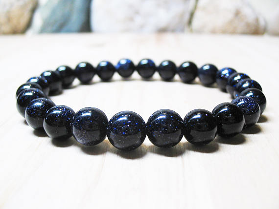 At a Great PriceGalaxy Jewelry 8mm Stretchable blue Blue Gold stone Bracelet Round, Smooth 7" for mens, womens, GF, BF, Adults.