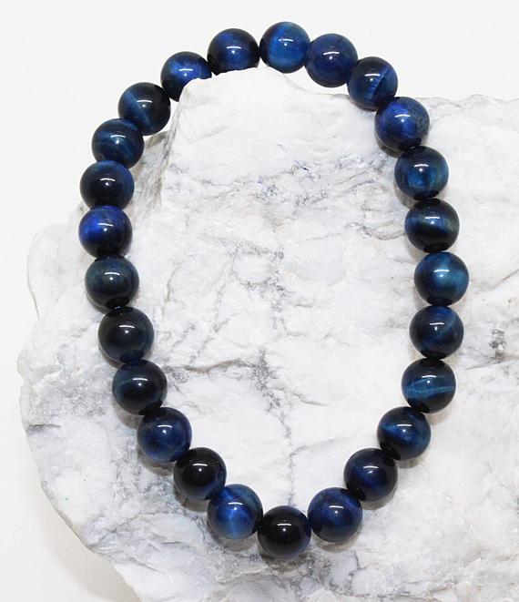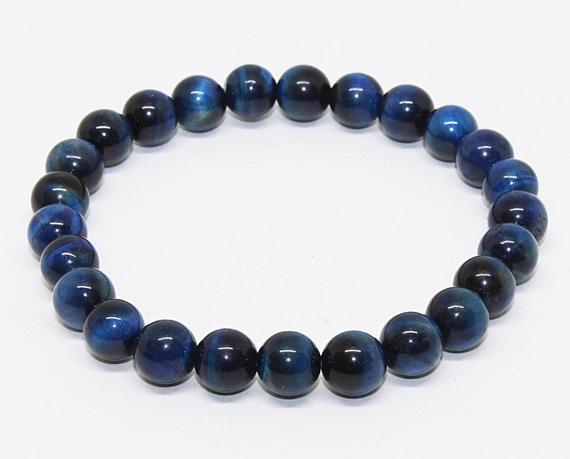 Galaxy Jewelry 8mm Stretchable blue Blue Kyanite Bracelet Round, Smooth 7" for mens, womens, GF, BF, Adults.