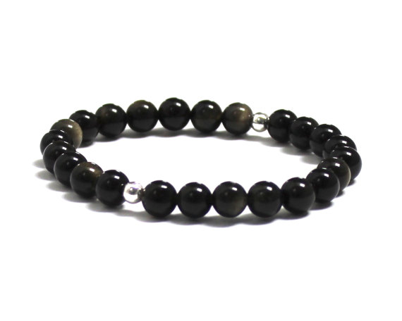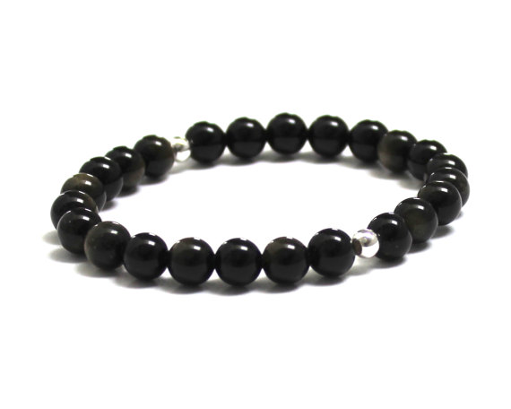 At a Great PriceGalaxy Jewelry silver helling 10mm stretchable Black Black Obsidian Bracelet Round, Smooth 7.5" for mens, womens, GF, BF, Adults.