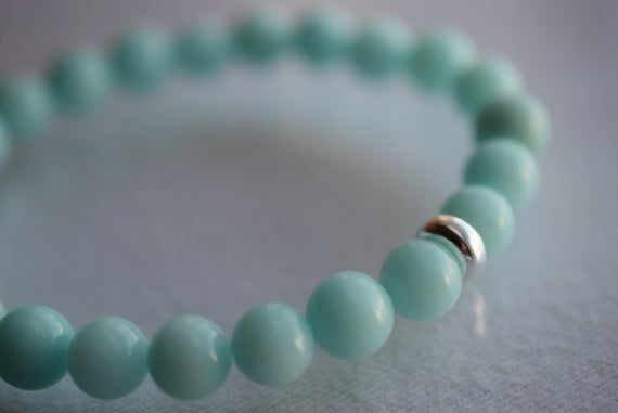 At a Great PriceGalaxy Jewelry Silver Helling 8mm Stretchable Sky Blue Amazonite Bracelet Round, Smooth 7" for mens, womens.