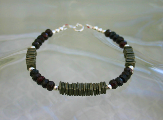 At a Great PriceGARNET And PYRITE BRACELET For Men.... Positivity, Passion, January Birthstone Bracelet. 5-6mm Code- WAR6025