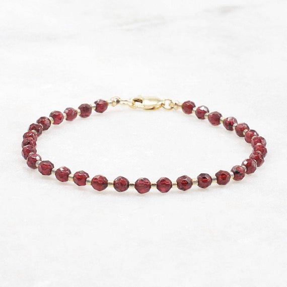 Garnet Bracelet for Women 14k Gold Filled January Birthstone Genuine Garnet Beaded Stacking Delicate Layering Garnet Jewelry Girlfriend Gift 3mm Code- WAR6523