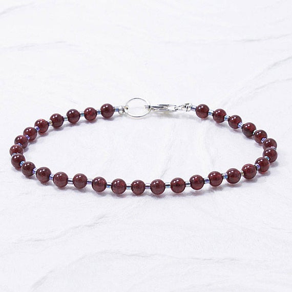 At a Great PriceGarnet Bracelet January Birthstone Garnet Jewelry Natural Delicate Layering Beaded Dainty Gemstone Gift for Her Gift for Women Layering 4mm Code- WAR6519