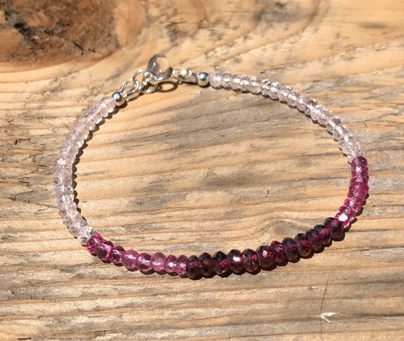 At a Great PriceGarnet, Pink Quartz and Rose Quartz Bracelet- Rose Quartz Briolette- Sterling Silver- Energy Healing Jewelry- Boho- Stacking- 3-4 mm Code- WAR6791