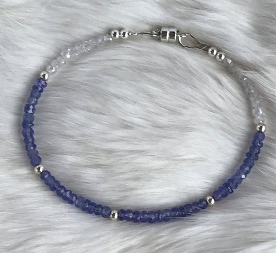 At a Great PriceGenuine Tanzanite, White Zircon and Sterling Silver beaded bracelet with magnetic clasp 3.5mm Code- WAR6107