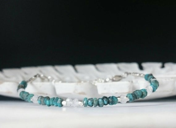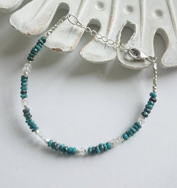 Genuine Turquoise Bracelet Moonstone Bracelet Karen Hill Tribe Silver Bracelet Real Turquoise Skinny Bracelet December Birthstone Bracelet 3-4mm Code- WAR6867