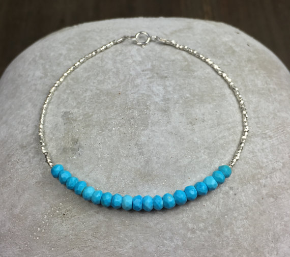 At a Great PriceGenuine turquoise bracelet rose gold silver turquoise bracelet friendship bracele birthday gift for wife dainty gemstone bracelet 4 mm Code- WAR6701
