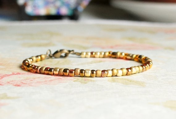 Gold And Bronze Bracelet, Seed Bead Bracelet, Stacking Bracelet, Simple Bracelet, Beaded Bracelet, Minimalist Bracelet, Dainty Bracelet 3mm Code- WAR9098