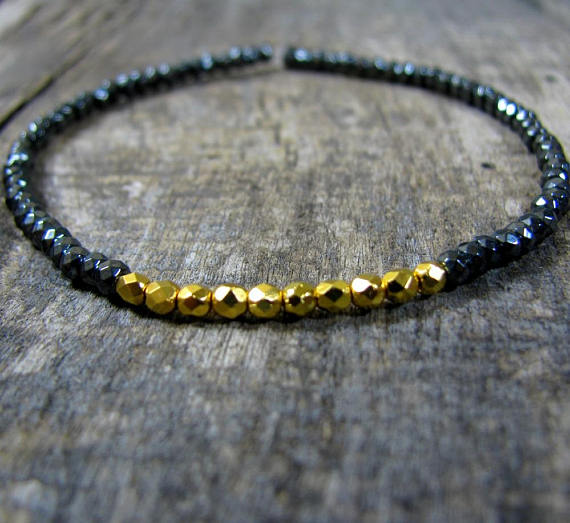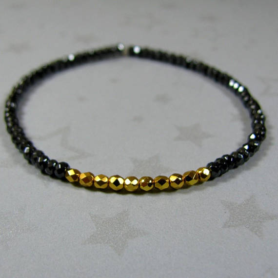 At a Great PriceGold Black Bracelet, Minimalist Bracelet Gold, Dainty Black Bracelet, Tiny Gray Gemstone Bracelet, Small Bead Bracelet, Hematite Bracelet 3mm Code- WAR6607