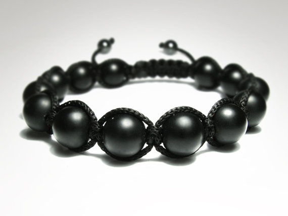 At a Great Pricegood luck gift 10mm Adjustable Black Matte Black Onyx Bracelet Round, Smooth 7.5" for mens, womens.