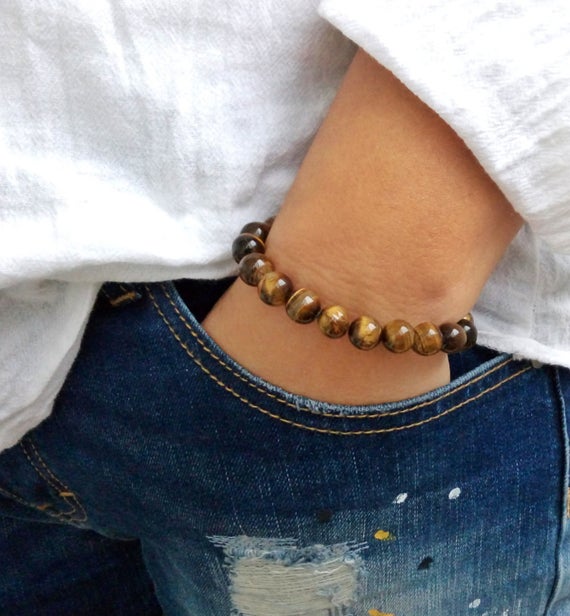 good luck gift 10mm Multi Colour Tiger Eye Stretchable Bracelet Round, Smooth 18cm for mens, womens, gf, bf and adults.
