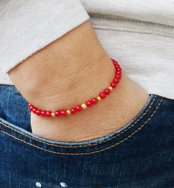 At a Great Pricegood luck gift 3.5mm Red RED CORAL Stretchable Bracelet Round, Smooth 18cm for mens, womens, gf, bf and adults.