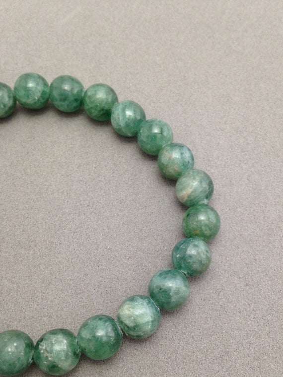 Green Apatite Stretch Bead Bracelet with Copper focal for Abundance, Clearing Negativity, Connecting Mind & Heart Energies 8mm Code- WAR6219