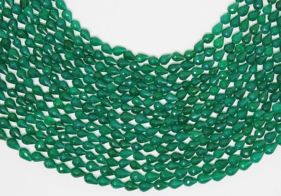 At a Great Pricegreen onyx center drill tear drop faceted 13'strand gemstone beads, jewelry supplies for jewelry making, bulk beads, for meditation jewellery for Reiki Healing gemstone 5-7mm