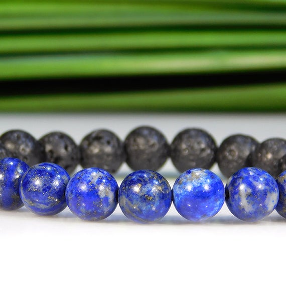 At a Great PriceGrounding 8mm Stretchable black & Blue Lapis Lazuli and Lava Rock Bracelet Round, Smooth 7" for mens, womens, gf, bf & Adult.