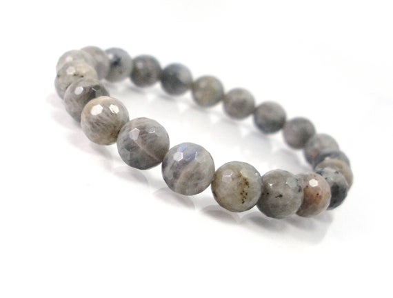 At a Great PriceGrounding 8mm Stretchable Gray Labradorite Bracelet Round, Faceted 7" for mens, womens.