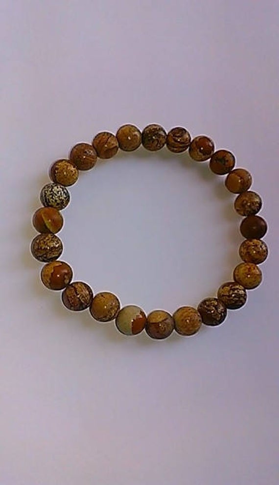At a Great PriceGrounding 8mm Stretchable Yellow Picture Jasper Bracelet Round, Smooth 7" for mens, womens, gf, bf & Adult.