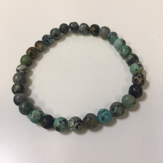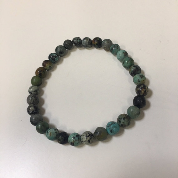 At a Great PriceHandmade Beaded 6mm Stretchable Blue African Turquoise Bracelet Round, Smooth 7" for mens, womens, gf, bf & Adult.