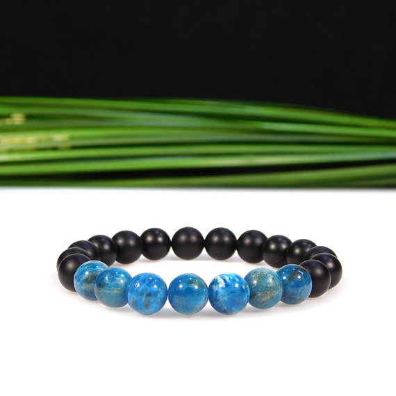 At a Great PriceHandmade Beaded 8mm Stretchable black & Blue Blue Apatite and Matte Onyx Bracelet Round, Smooth 7" for mens, womens, gf, bf & Adult.