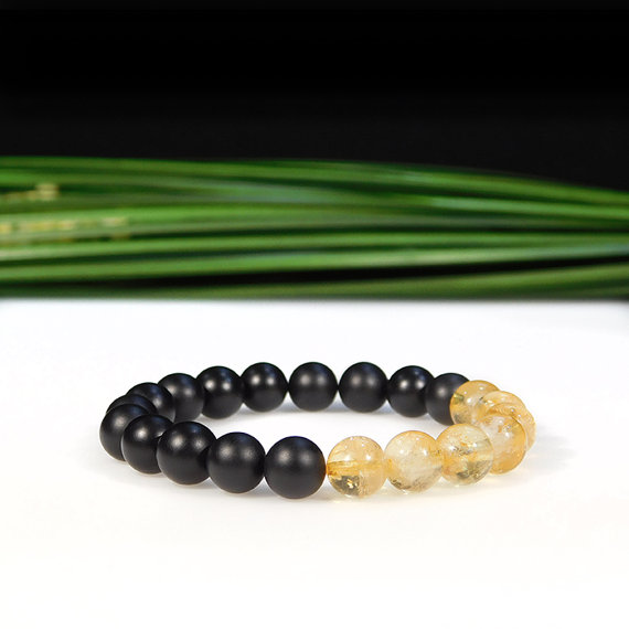 At a Great PriceHandmade Beaded 8mm Stretchable Black & Yellow Citrine and Matte Onyx Bracelet Round, Smooth 7" for mens, womens, gf, bf & Adult.