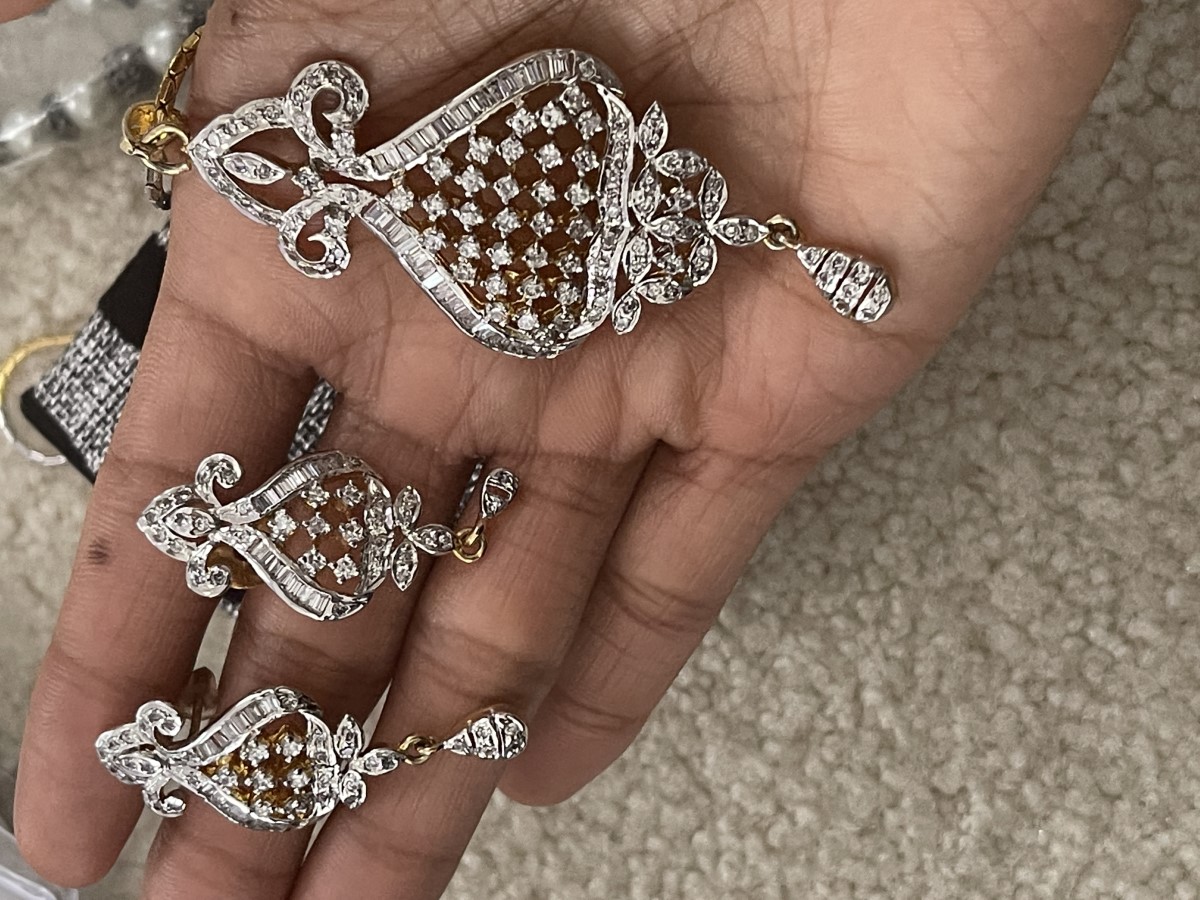 High Quality American Diamond, Cubic Zirconia, Kundan Kalash Leaf Necklace and Earring set