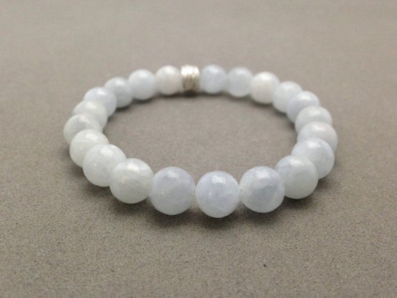 At a Great PriceIcy Blue Calcite and Karen Hill Tribe Silver Stretch Bead Bracelet for Reducing Stress and Anxiety 8mm Code- WAR6170