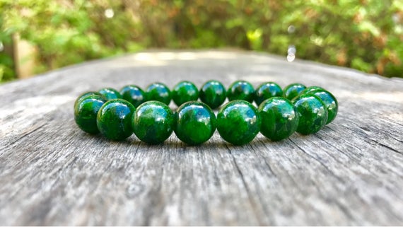 At a Great PriceJewelry Energy 10mm Stretchable Green Chrome Diopside Bracelet Round, Smooth 7.5" for mens, womens, gf, bf & Adult.