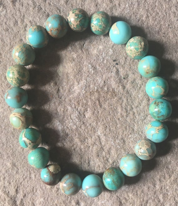 At a Great PriceJewelry Energy 4mm Blue turquoise Stretchable Bracelet Round, Smooth 18cm for mens, womens, gf, bf and adults.