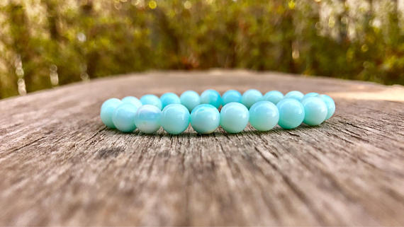 At a Great PriceJewelry Energy 7mm Stretchable Blue Peruvian Blue Opal Bracelet Round, Smooth 7" for mens, womens, gf, bf & Adult.