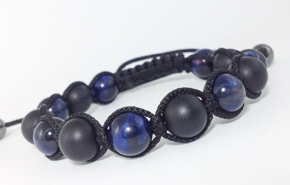 At a Great PriceJewelry Energy 8mm Adjustable Black Matte Black Onyx, Blue Tigers Eye Bracelet Round, Smooth 7" for mens, womens.