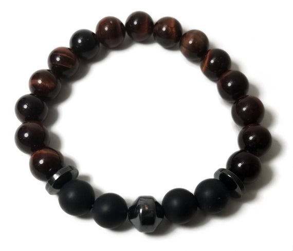 At a Great PriceJewelry Energy 8mm Stretchable Multi Red Tiger Eye, Hematite, Onyx Bracelet Round, Smooth 7" for mens, womens, GF, BF, Adults.