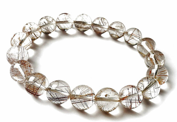 At a Great PriceJewelry Energy 9mm White Rutilated Quartz Stretchable Bracelet Round, Smooth 18cm for mens, womens, gf, bf and adults.