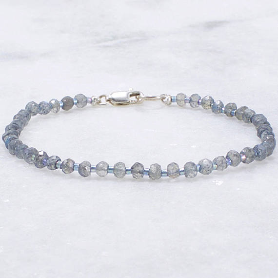 At a Great PriceLabradorite Bracelet, Dainty Bracelet, Stacking Bracelet, Gray Beaded Bracelet, Gemstone Bracelet, Womens Gift, Gift for Her 3mm Code- WAR6542