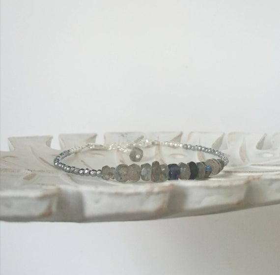 At a Great PriceLabradorite Bracelet Silver Bracelet Skinny Labradorite Bracelet Pyrite Bracelet Thin Silver Bracelet Blue Flash Labradorite Bracelet Gift 3-4mm Code- WAR6865