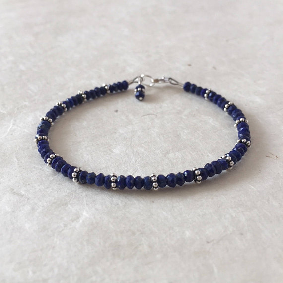 At a Great PriceLapis Lazuli Karen Hill Tribe Thai Silver Beaded Stacking Bracelet with Daisy Spacers, Sundance Style, Sundance Tribe, Stacking Bracelet 4mm Code- WAR6433