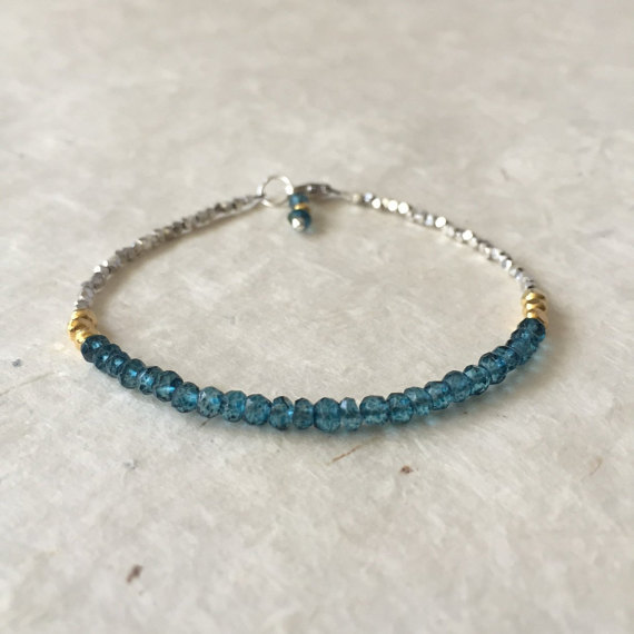 At a Great PriceLondon Blue Quartz Karen Hill Tribe Thai Silver Beaded Bracelet with Dangle, Sundance Style, Boho Stack Bracelet 3-4mm Code- WAR6443