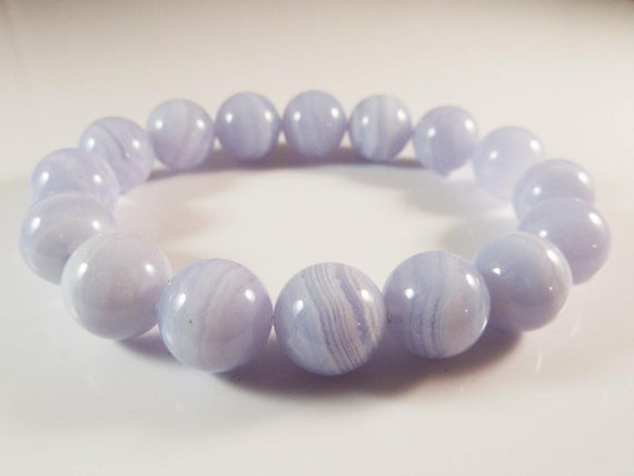 love beach youth 12mm Stretchable Blue Blue Lace Agate Bracelet Round, Smooth 7.5" for mens, womens, gf, bf & Adult.